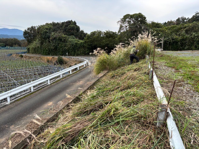 ぶどう園の近くから、カヤ刈りをしていきます。